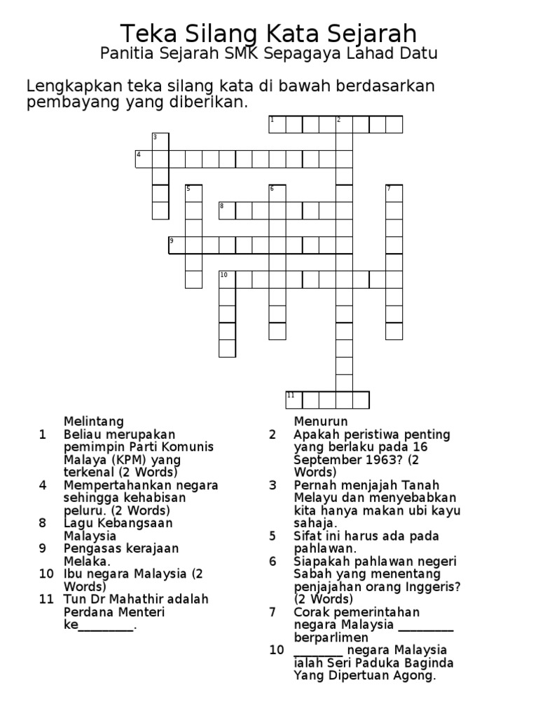 Bermacam Teka Silang Kata Sejarah Tingkatan 1 Yang Sangat Berguna Untuk Para Guru Lihat Pekeliling Terbaru Kerajaan